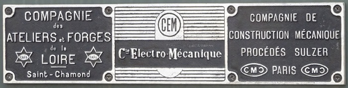 The locomotives were constructed at the Compagnie des Ateliers et Forges de la Loire (CAFL) workshops at Saint-Chamond. Electrical equipment was supplied by Compagnie Electro-Mecanique (CEM), the French associates of Brown Boveri. The first ten power units were supplied by Sulzer, Winterthur. The remainder were built by Compagnie de Construction Mecanique (CCM) subsiduary, at the St Denis plant.