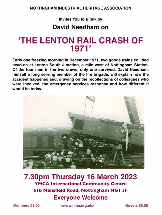 1971 On August 21st 7605 & 5270 worked the summer dated roundtrip Nottingham - Llandudno Town. 7605 was present at Derby Works during September. On the morning of October 1st 7605 was light engine at Rugby. The second Class 25 to be withdrawn was green liveried accident damaged 7605. At 06.15 on December 16 in a violent collision at Lenton South Junction (Nottingham) ladder crossover, the 4D02 01.30 Liverpool - Nottingham parcels train, hauled by 7605, collided head on with the 9L14 Bestwood Park Sidings - Derby Gas Works special with 8115 & 8142 and 32 loaded coal wagons. Regrettably both drivers and the guard of the parcels train were killed. The severely damaged 7605 was initially moved to Beeston Freightliner terminal, then onto Derby Works where it was withdrawn in March 1972 and broken up the following month. This was the shortest lived of any Class 24/25, with a working life of six years and three months. The inquiry established to investigate the incident failed to positively identify the cause, but believed the driver of the parcels train had cancelled a number of AWS warnings without heeding the signal aspects displayed.